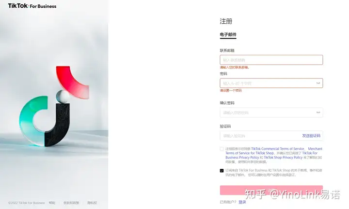 填入您的邮箱、密码、邮箱收到的验证码即可完成TikTok for Business个人账号的注册。