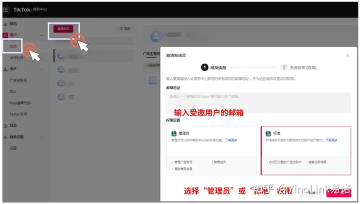 广告主可以通过BC管理帮助您投放TikTok广告的人。创建BC的用户拥有BC的管理员权限,可邀请其他成员进入BC一起管理或使用BC内的资产。