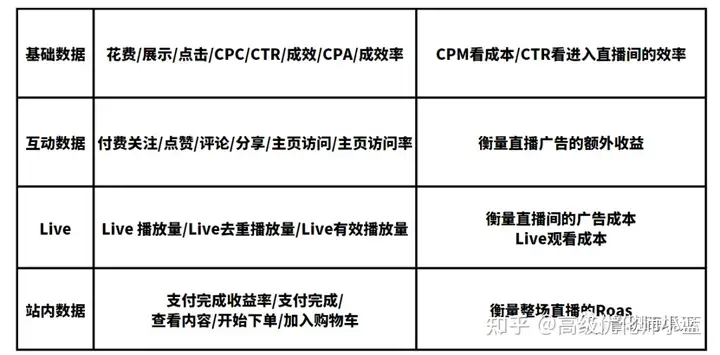然后直播间的分析要看整体数据,涉及播放量、去重播放量、有效播放量,衡量直播间的成本,为之后的直播去获取经验。