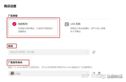 在广告系列层级,广告目标选择“店铺推广”,然后在广告组层级选择广告类型为“直播购物”之后选择商店和广告发布身份,设置好预算、出价、受众即可,最后在广告层级选择要投放的素材,这里素材除了可以选择TikTok帐号的视频,也可以选择直播间画面作为广告素材,选好素材后发布即可投放。