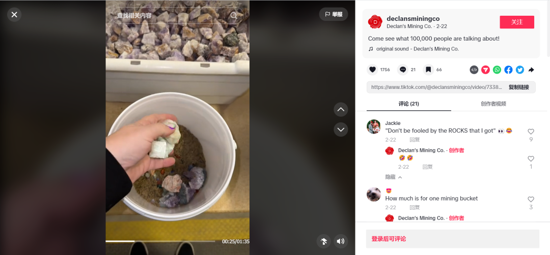 最近在TikTok刷到了一个名为declansminingco的美国账号,以下简称“declan”