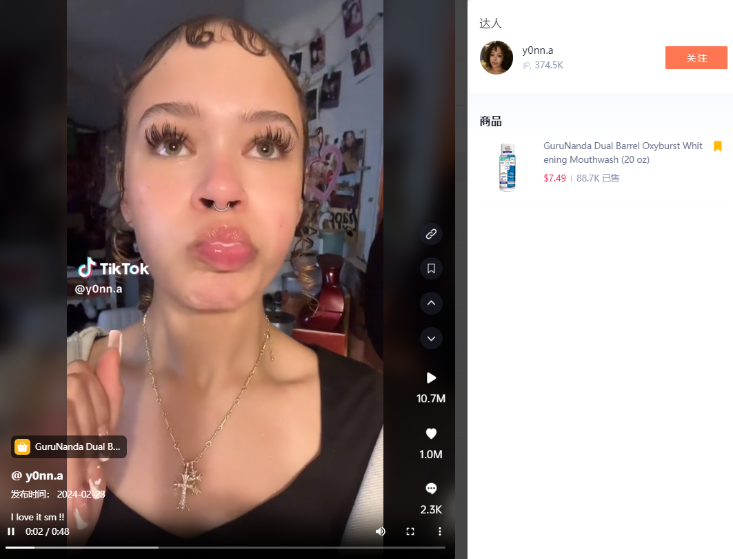 @y0nn.a累计为这款漱口水发布了6条视频,目前播放量已达到1200万,点赞超110万。在这6条视频中也出现了嘀嗒狗先前介绍过的一款爆品漱口水,在产品设计上,今天推荐的这款漱口水有所不同,该产品使用分装设计,内含成分更加温和,可以适配更多敏感人群的口腔。