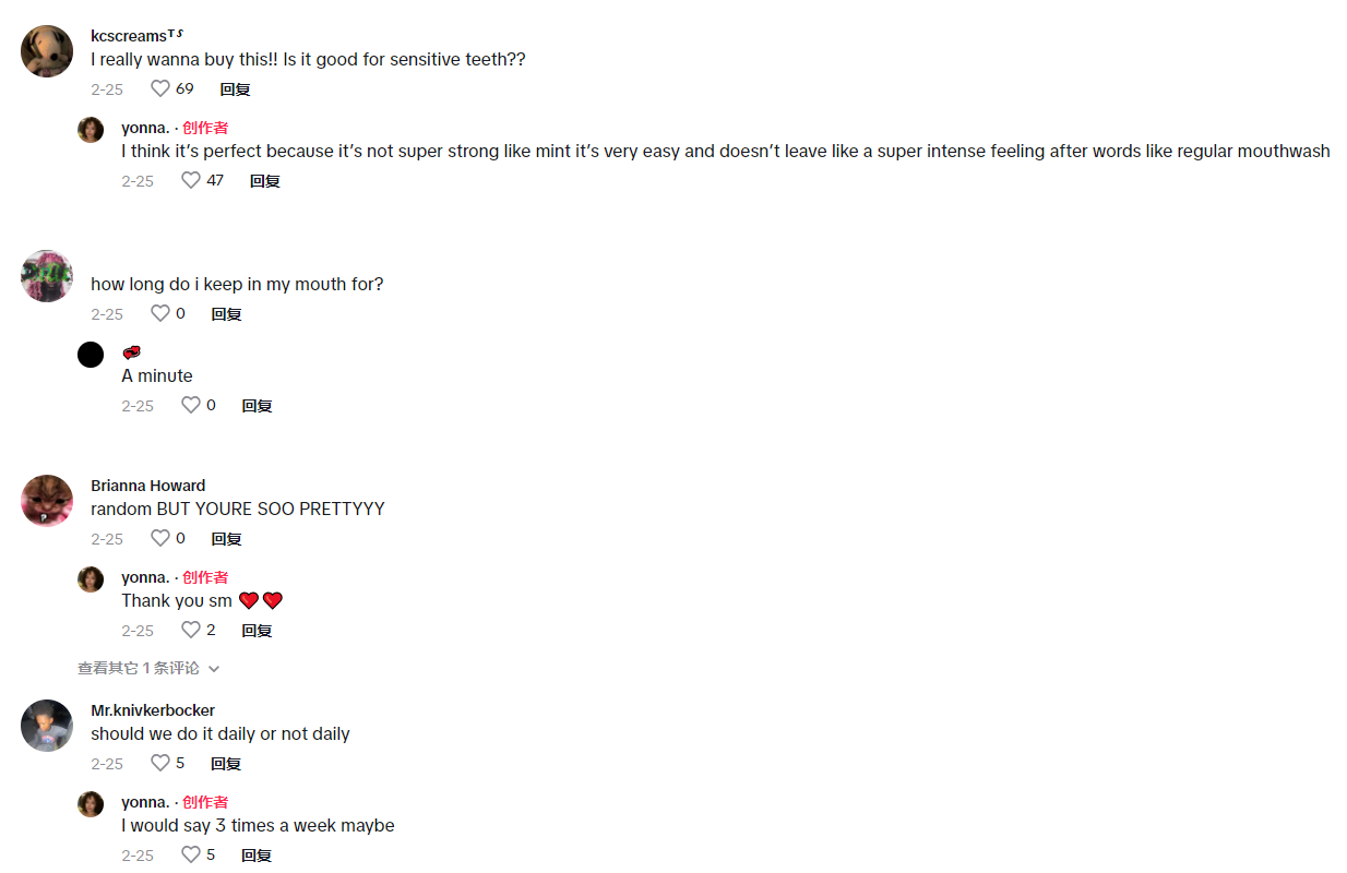 这些视频解答了在不同场景下应该如何合理使用这款漱口水,也让观众清楚的看到使用一段时间漱口水之后牙齿的变化。也让评论区许多人认识到自己是急需一款这样的漱口水来保持口腔健康。