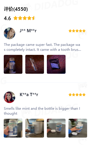 通过嘀嗒狗官网可以查看到商品的评分,目前该商品整体评分为4.6分,已经坚持使用一段时间的用户纷纷表示味道非常好闻,牙齿已经有所变化。