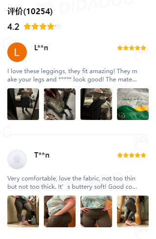 通过嘀嗒狗官网可以查看到商品的评分,目前该商品的整体评分为4.2分,在评论区可以看到许多用户晒出自己穿着这条裤子的照片,并夸赞这条裤子舒适的面料以及所勾勒出的身材的完美。