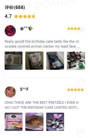 通过嘀嗒狗官网可以查看到商品的评分,目前该商品的整体评分为4.7分,评论区尝过这款饼干的用户都表示这是他们吃过最好吃的椒盐味小饼干。