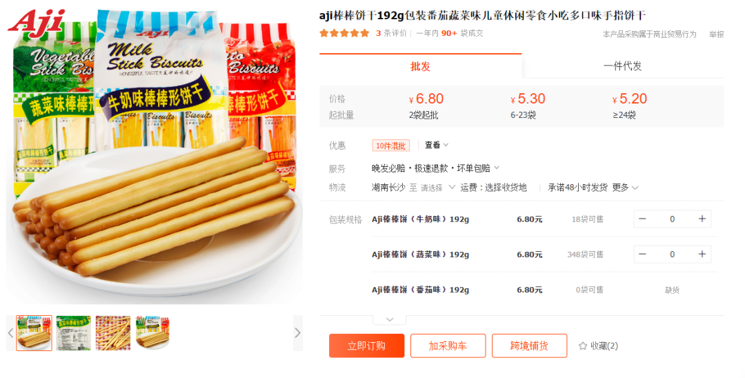 通过1688检索,类似的手指饼干售价为5.2元起。