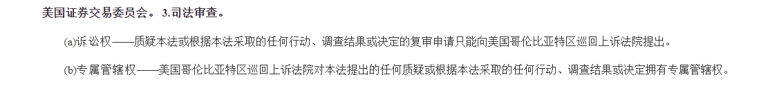 就是说如果要起诉该法案,只能到哥伦比亚巡回上诉法院。为什么这样做呢?