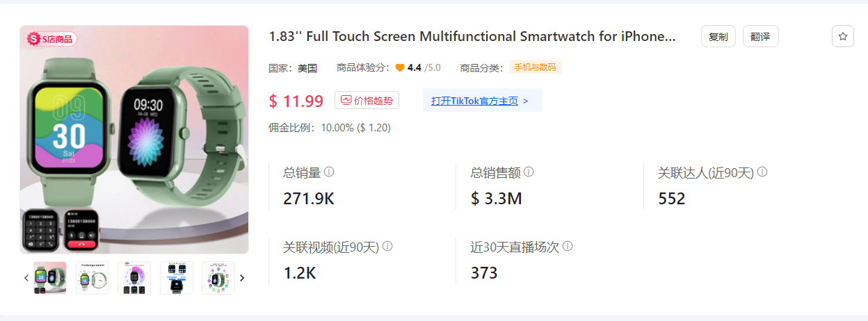 据悉,目前这款耳机在平台的售价为 23.39-25.99 美金,佣金比例达18%,单周销售额近 70 万美元。