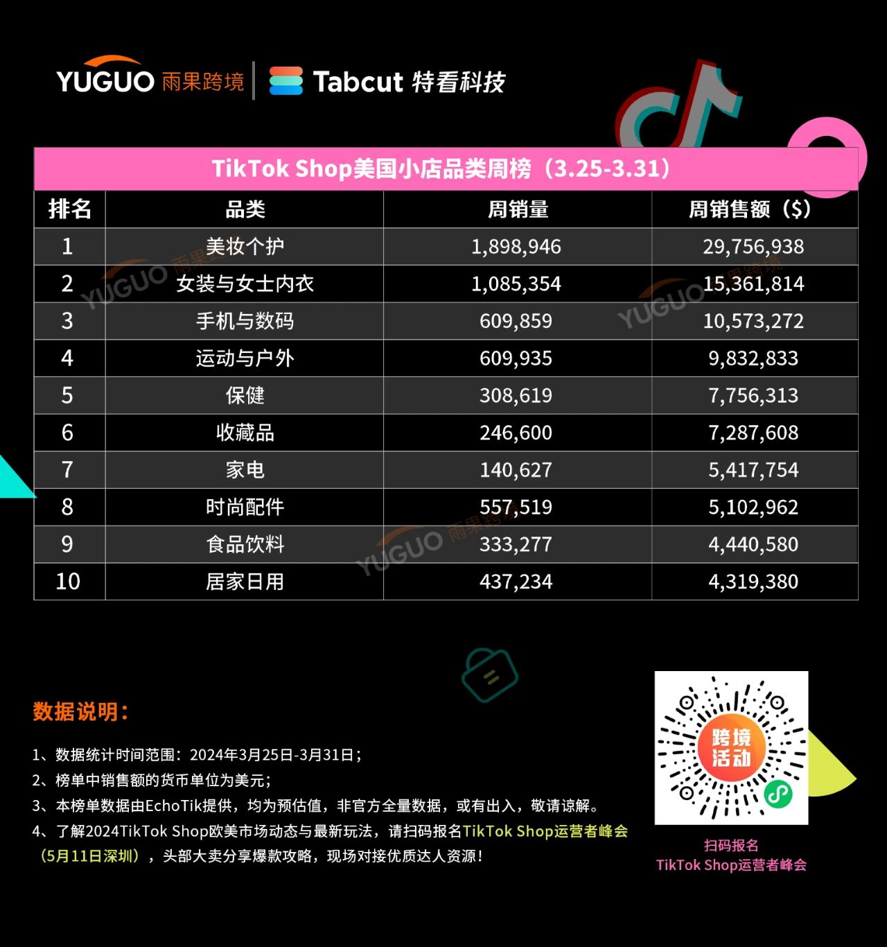 本期品类榜单数据具体见下图: