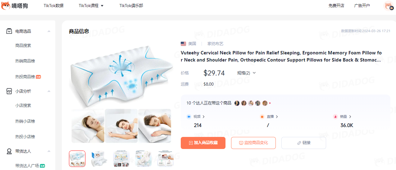 TikTok美国站“颈椎枕”日出3000单,家纺类目出新品