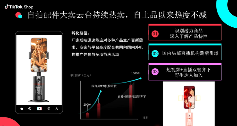 首先还是识别潜力产品的产品特性,适合年轻的女性,她们喜欢自拍视频,喜欢跟朋友做室内的party。