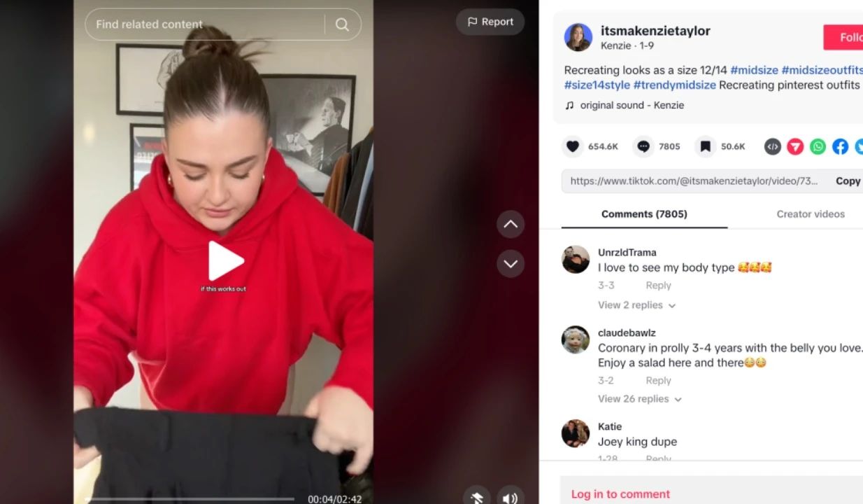 Kenzie 带货 5 万条阔腿裤的视频|来源:TikTok 截图