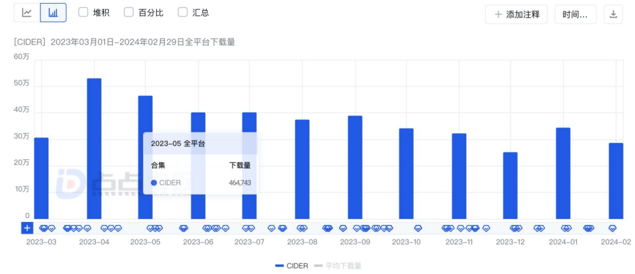 单月下载量变化|来源:点点数据