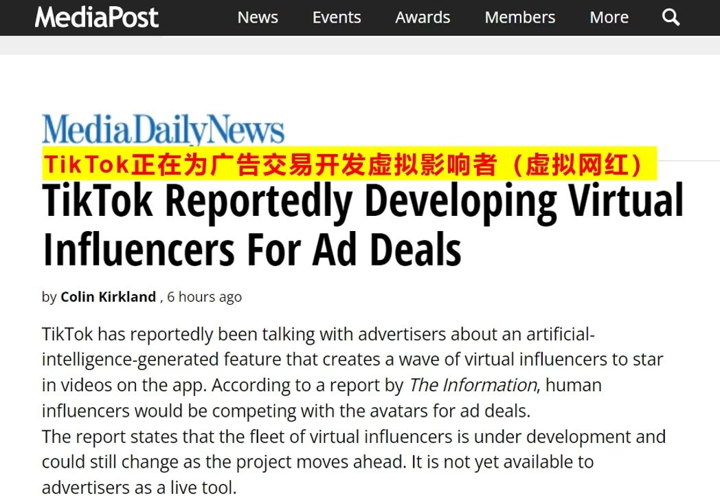 TikTok正在为广告交易开发虚拟网红 图源:mediapost