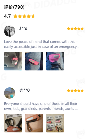 通过嘀嗒狗官网可以查看到商品的评分,目前该商品的整体评分为4.7分。许多用户在购买后推荐给了身边的亲戚朋友,并且把它放在车上,让用户拥有了十足的安全感。