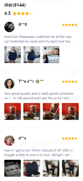 通过嘀嗒狗官网可以查看到商品的评分,目前该商品的整体评分为4.3分,在评论区可以看到许多购买过的用户分享自己的尺码建议,并且极力赞许这款产品所带来的塑身效果。