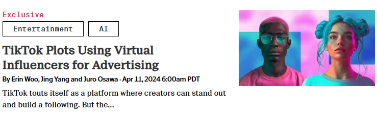 同时,TikTok官方也表态,他们开发这项功能的意图是让虚拟网红成为现有真实网红的补充,而不是完全取代他们。