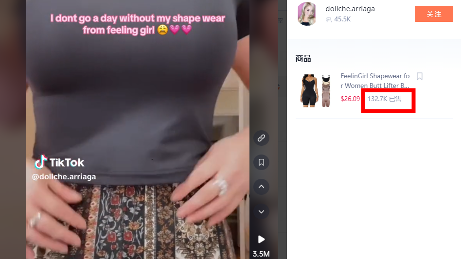 FeelinGirl塑身衣在社媒上爆火 图源:TikTok