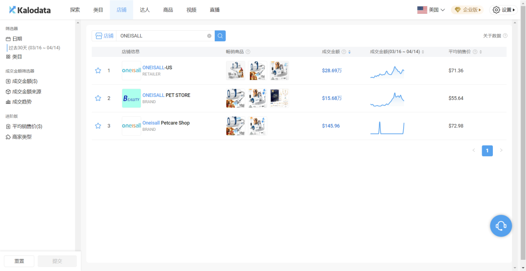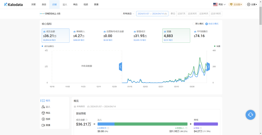 ONEISALL品牌充分利用TikTok这一平台,通过达人合作和官方账号等推广策略,进一步拓展了品牌的社交影响力和知名度。 据Kalodata数据显示,ONEISALL在TikTok美国共有3家店铺,过去30天成交金额分别为28.69万美金、15.68万美金、145.96美金。让我们以成交金额最高ONEISALL-US小店为例,看看在这种销售热潮背后有哪些值得学习的带货经验。