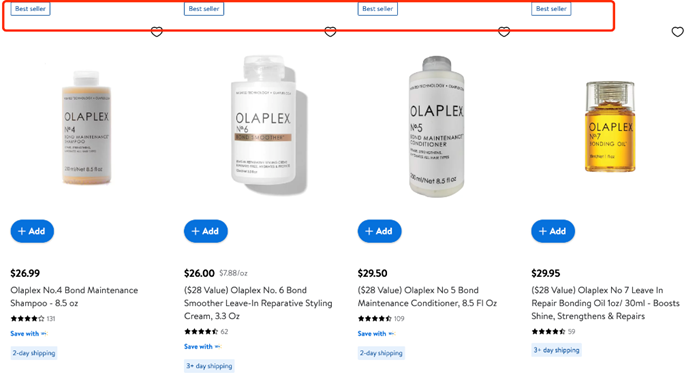 Olaplex霸屏沃尔玛BSR榜单 图源:沃尔玛