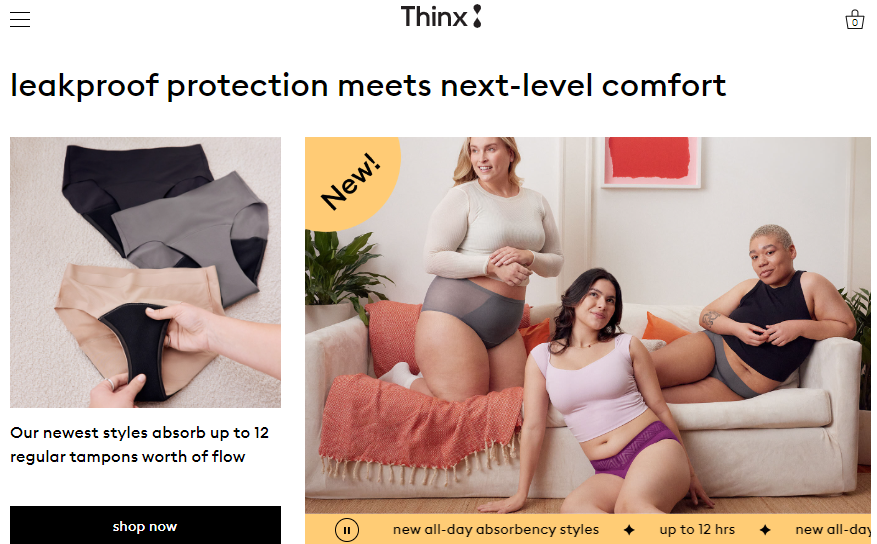 目前THINX拥有4种内裤类型,包括低腰三角裤量多以及量少、运动内裤、丁字裤,产品设计非常美观。在设计运动内裤时,THINX注意到很多内裤的裤管口容易勒出红印或跟皮肤摩擦导致瘙痒,对裤管口进行了改良,产品介绍中有一句是“再见了,皮肤擦伤”。 凭借着优质的产品和巨大的发展前景,THINX很快获得了市场的青睐。2018年,其成为Inc.500强中增长最快的女性领导人公司,收入达到5000万美元;2021年,THINX收入达到顶峰,年营收1亿美元,稳居生理裤品类第一名。