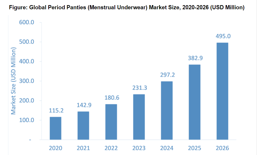 从生理裤这样一个小众产品作为突破口,到发展成整个颇具盛名的品牌,THINX这条路走得非常正确。当然,这与整个市场的需求密不可分。 目前消费者的环保意识以及女性意识不断增强,这让生理裤产品乘风而起。从环保意识来看,与用完即扔的一次性生理期用品相比,可循环使用的生理裤更有利于环境保护;从女性意识来看,高效、体验感更好的生理裤让消费者可以更容易抛弃“月经羞耻”。 根据Stratview Research商业调研公司的预测,全球生理裤的市场规模将从2020年的1.152亿美元飙升至2026年的4.95亿美元,复合年均增长率为28%,消费潜力相当大。