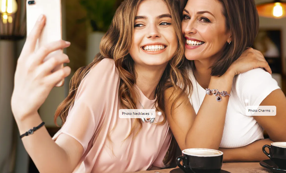 在独立站内,soufeel放置母女二人佩戴定制饰品开心拍合照的图片,图片上母亲与女儿亲密互动十分融洽有爱,从画面上渲染节日氛围展示产品,引起消费者情感共鸣,从而促进用户下单购买。