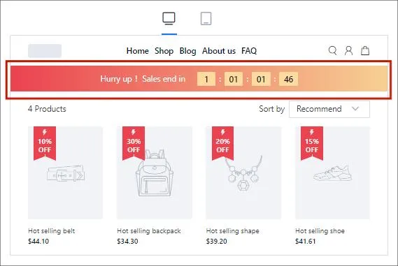 在网站设置限时折扣倒计时,营造独立站内的购物紧迫感,促使顾客下单,短时间内快速提高销量和转化。