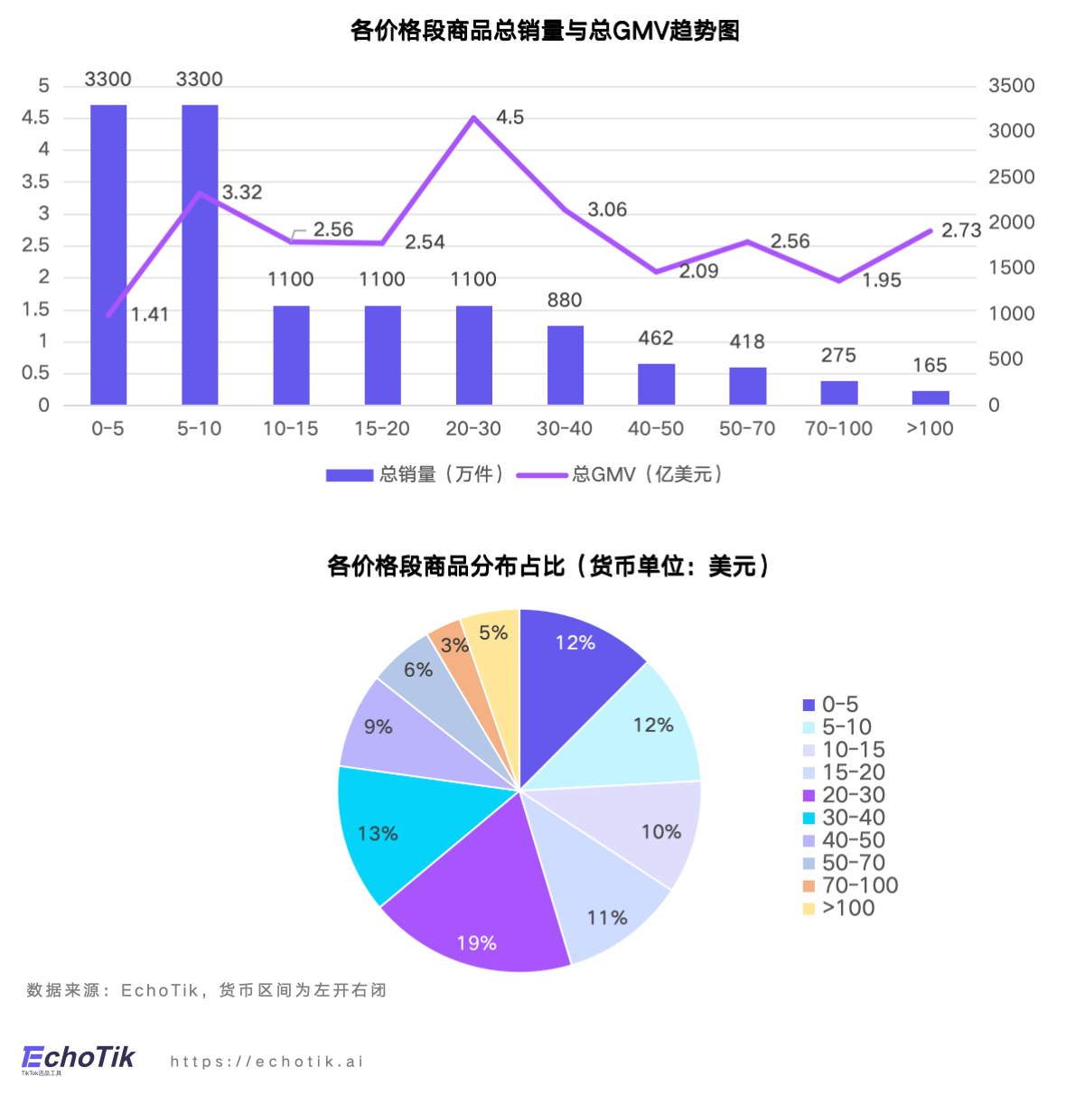 04 20-30美元价格段商品数量及总GMV最高,百元以上高客单价商品GMV占比正在提升