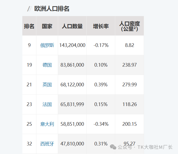 我好奇地查阅了欧洲人口排名,发现其实排名首位的俄罗斯因战争状态,暂且不论。英国已开通TK小店,其余四个国家为德国、法国、意大利和西班牙。