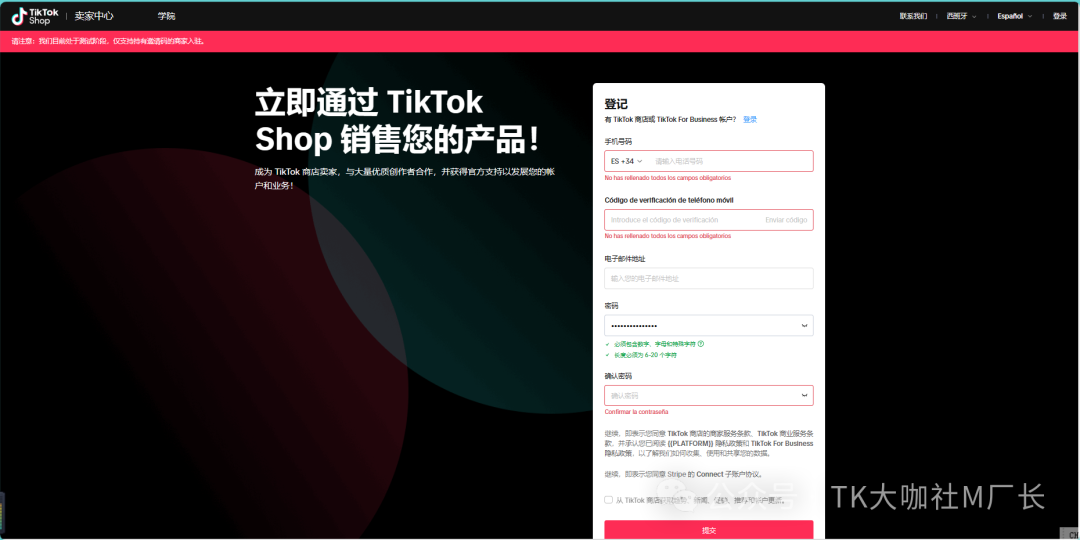 我尝试打开后台链接,发现目前仅西班牙能访问。西班牙需定邀,即需要邀请码入驻,部分商家已开始内测,西班牙小店已上架商品。其他国家尚无法访问。