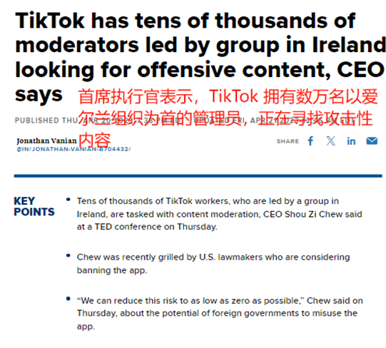 TikTok在爱尔兰组织了上万人的审查队伍 图源:CNBC