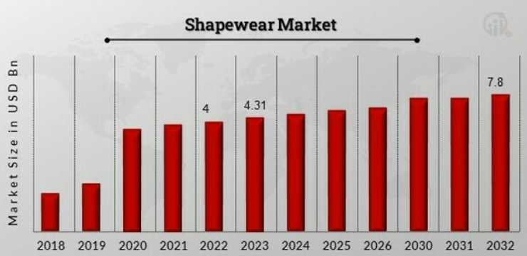 根据marketresearchfuture数据显示,2022年全球塑身内衣市场规模预计为40亿美元。预计塑身内衣市场行业将从2024年的43.1亿美元增长到2032年的78亿美元,预测期内复合年增长率(CAGR)为5.95%(2024—2032)。