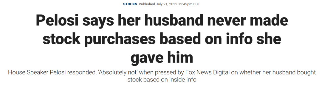 佩洛西表示她丈夫从未因为自己的信息决策投资