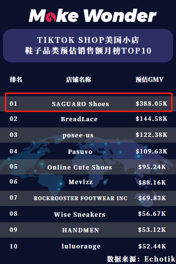 SAGUARO Shoes登上销售额月榜榜首 图源:Echotik