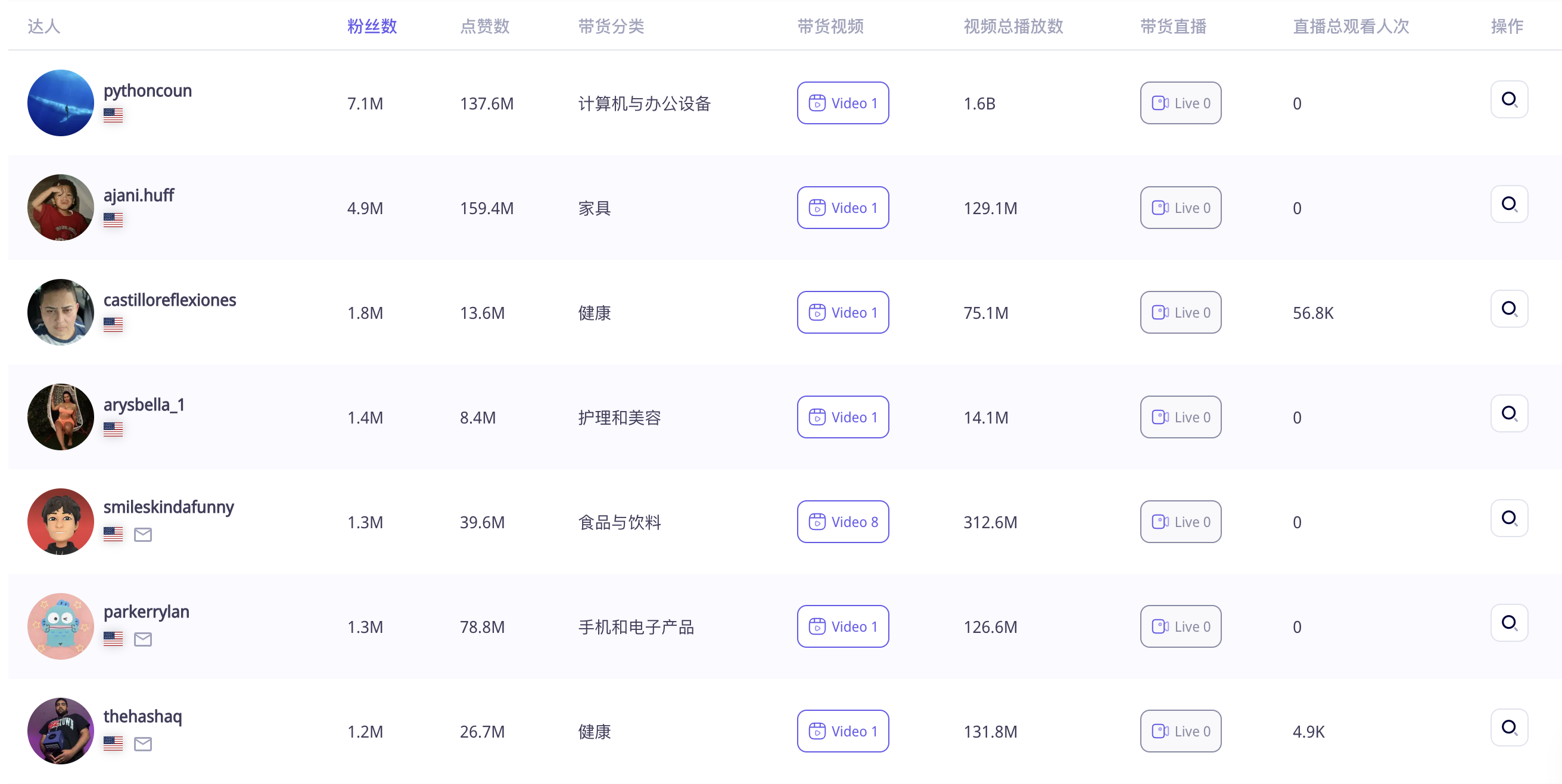 从带货达人画像来看,达人以热爱健身和科技的青年男女为主。由于该商品高达28%的佣金率,许多博主愿意为其纯佣金带货,其中不乏粉丝数百万级别的头部网红。