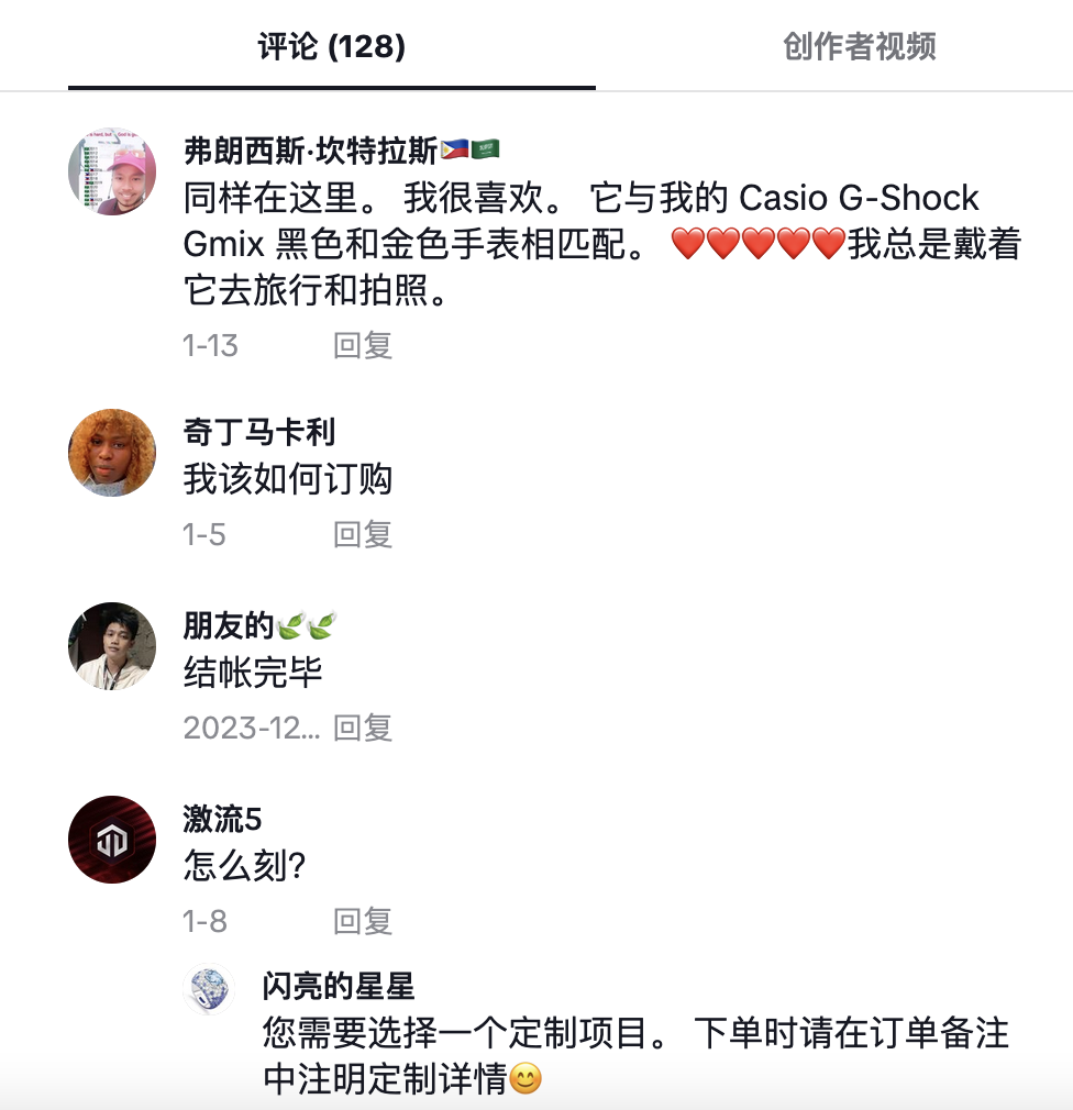 许多用户在评论区表达了对产品的喜爱,并且进一步询问产品相关的问题等等。