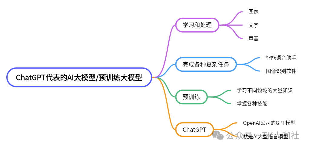 「预训练」:可以理解为像学生学习知识一样,AI预训练大模型可以通过不同领域的大量学习、训练、掌握各种知识和技能;由OpenAI公司开发的模型GPT就是一种大型语言模型。