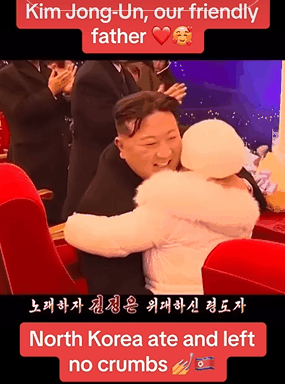 管你是混西海岸还是东海岸的Rapper,你口中的车子票子马子,甚至枪支,在正规军面前就如街头混混抵抗钢铁洪流一样脆弱不堪;管你是什么唱跳俱佳的欧美Diva,你词曲中的情情爱爱,老娘Slay,在朝鲜 “主体Vocal” 前显得梨花带雨,不堪一击。 最终,以这首歌为BGM创作的短视频开始在欧美互联网上病毒式传播,很多Z世代网友都在调侃,金将军的这波热度超越了同期的泰勒·斯威夫特。