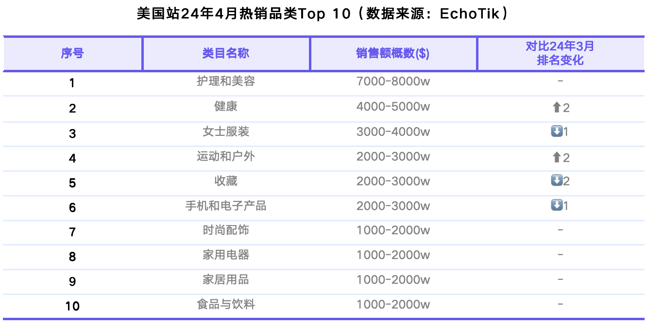 TikTok Shop美国站4月榜单:GMV整体稳定,健康与运动户外类目逆势增长