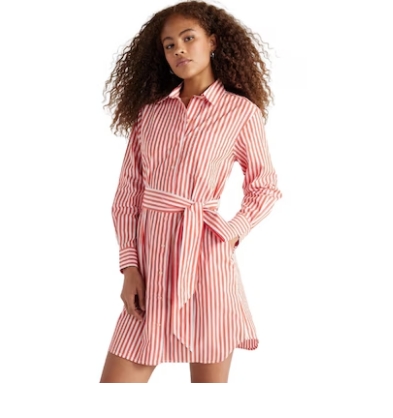 Free Assembly Cotton Belted Shirtdress with Long Sleeves