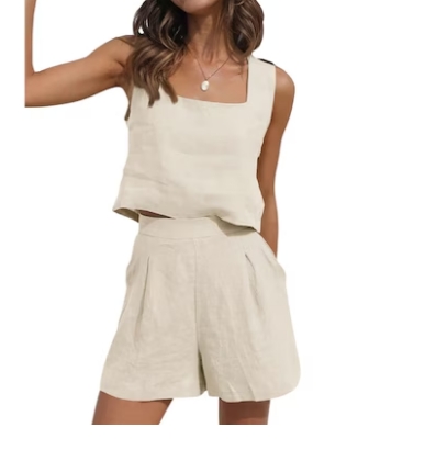 STARVNC Square Neck Linen Matching 2 Piece Sets