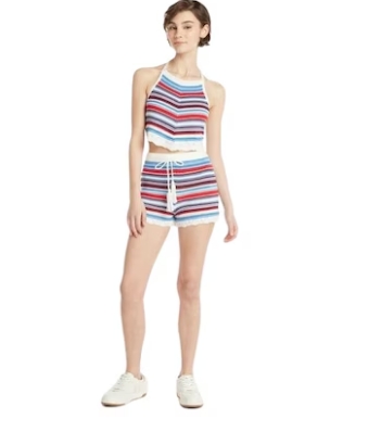 No Boundaries Juniors’ Striped Crochet Halter and Shorts Set
