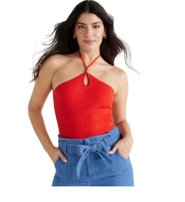 Enter your halter top era with Sofia Jeans' chic makeover of the iconic style. Crafted from soft, stretchy knit fabric with ribbed texture and a charming keyhole detail, it adds a cute touch to your summer wardrobe. Pair this halter top with cargo pants for a laidback and trendy look.