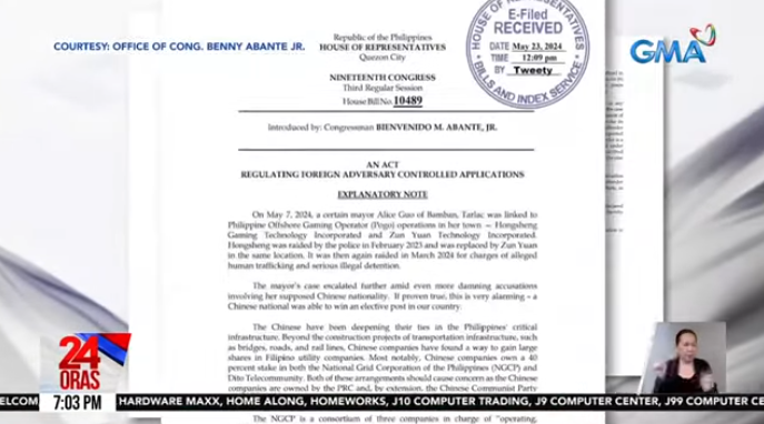 该法案由马尼拉代表Bienvenido Abante Jr.于5月24日提交,编号为10489号。 此前,菲律宾武装部队和国家安全委员会已考虑禁止军方和政府人员使用TikTok。
