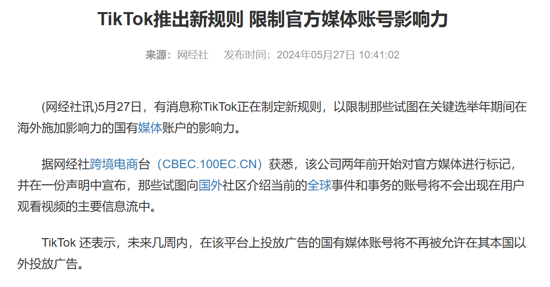 今年2月,TikTok打败YouTube、Disney+和Tinder等,以1.89亿美元的成绩成为全球收入最高的应用程序。 庞大的流量池、拥有巨大消费潜力的用户群体,这让TikTok发展电商业务的决心越来越坚定。 所以,放弃是不可能放弃的,在别国提案的风口浪尖之下,TikTok默默做了很多“自保”的举措。 总的来概括就是:监管更严了、在其他地区的存在感更强了、TikTok内部科技功能更多了。 自美国禁令事件以来,在监管方面,TikTok Shop 跨境店发布了一系列严格的商品管理规则,其中包含明确了限售商品的类别及惩罚、严惩商品虚标重量、加强内容审核、升级直播购物监测技术来抵制假货等操作。 通过坚持严格的政策、利用先进的检测机制并不断改进系统机制,努力打造值得信赖、令人愉悦且符合充满活力的TikTok社区价值观的广告体验,争取让美国、菲律宾等“社会价值观”等惯用借口再无话可说。 其中,为了减少平台政治化,TikTok也推出新规则,限制官方媒体账号影响力。