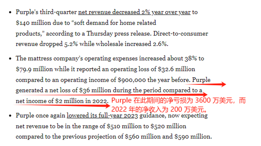 Purple床垫品牌亏损严重 图源:Retail Dive