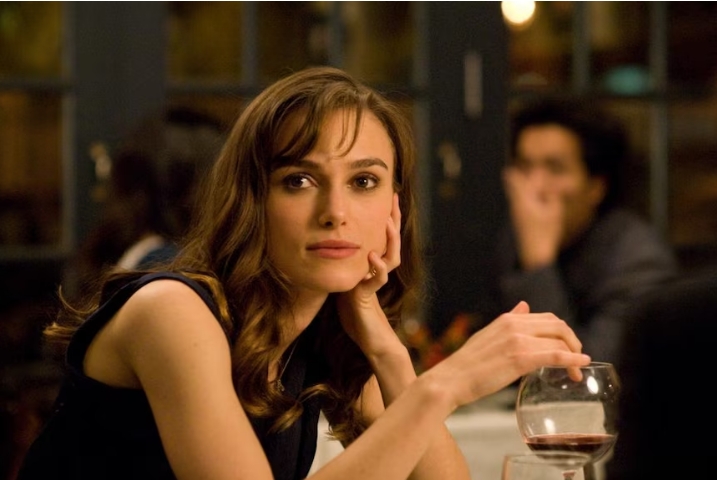 Keira Knightley, who writes about wine in Noble Rot, during a scene in the movie Last Night.(Supplied: IMDB)