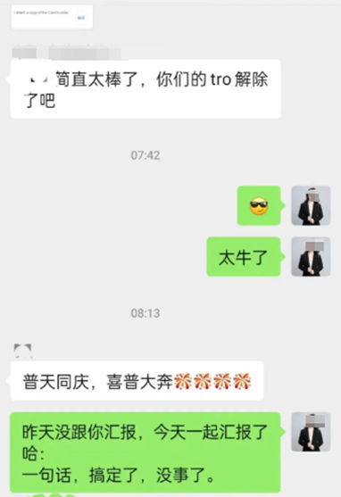 专利一下证就起诉同领域多位卖家,Hyperice的目的不言而喻。然而,Hyperice专利维权来势汹汹,跨境卖家也不是吃素的。 在收到TRO禁令不久后,其中一位卖家就在专业法律顾问的协助下,迅速采取行动,不到6天时间便向法院提交了反对TRO的动议,并于提交当日获得了法院的正面回复。此番司法干预不仅促使Hyperice解除在亚马逊平台上对卖家账户的冻结措施,还倒逼其撤销了先前的诉讼案件。